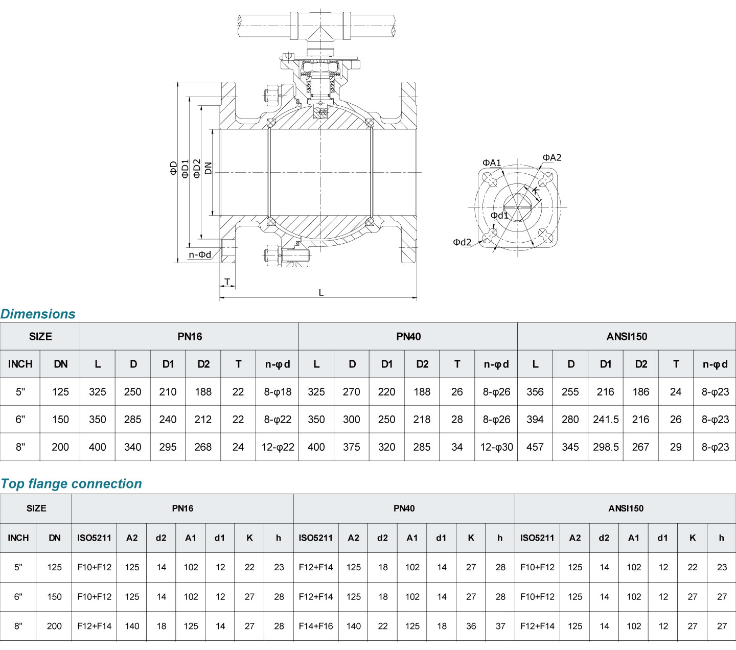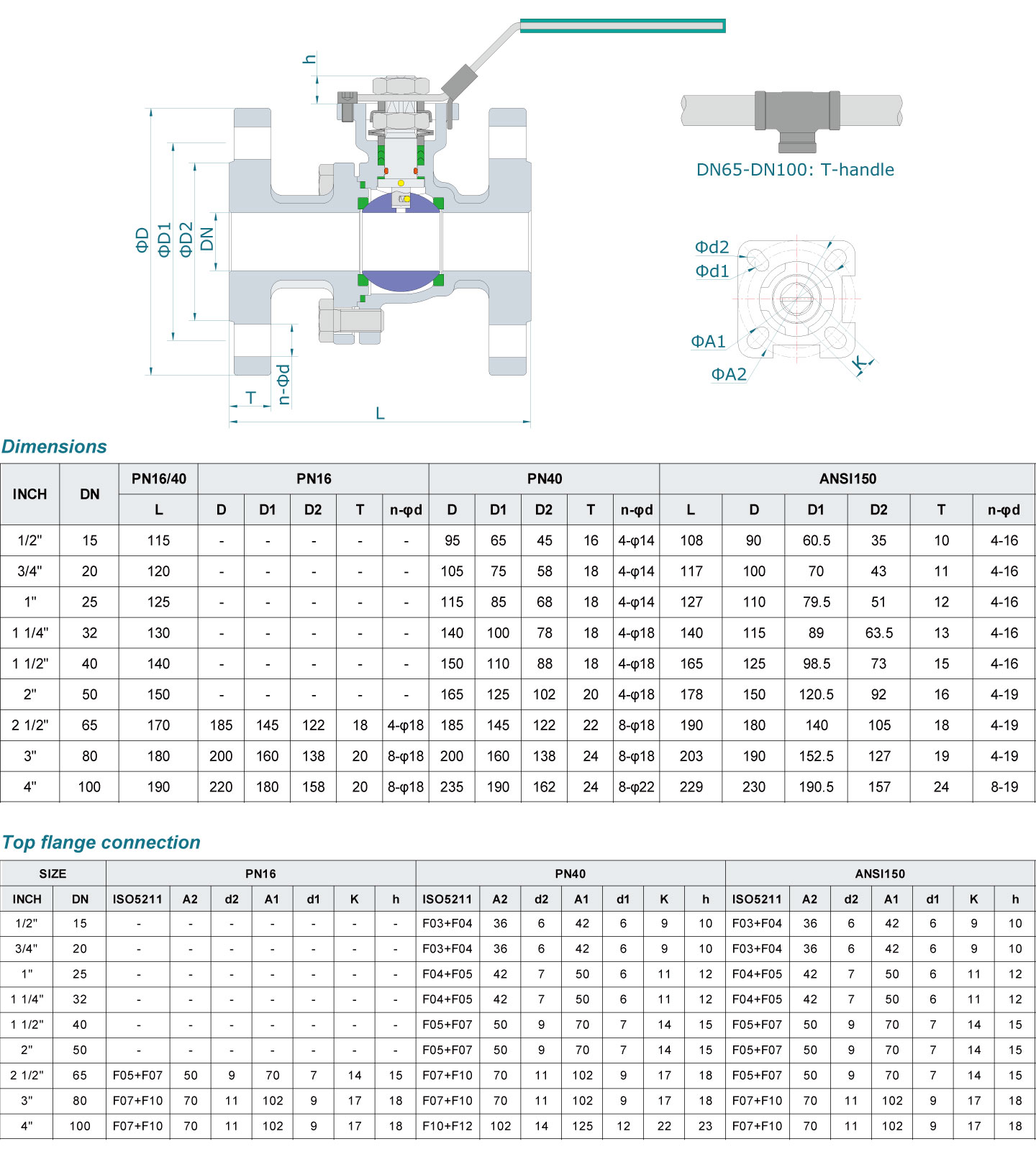 • Solid ball for all sizes up to DN200.