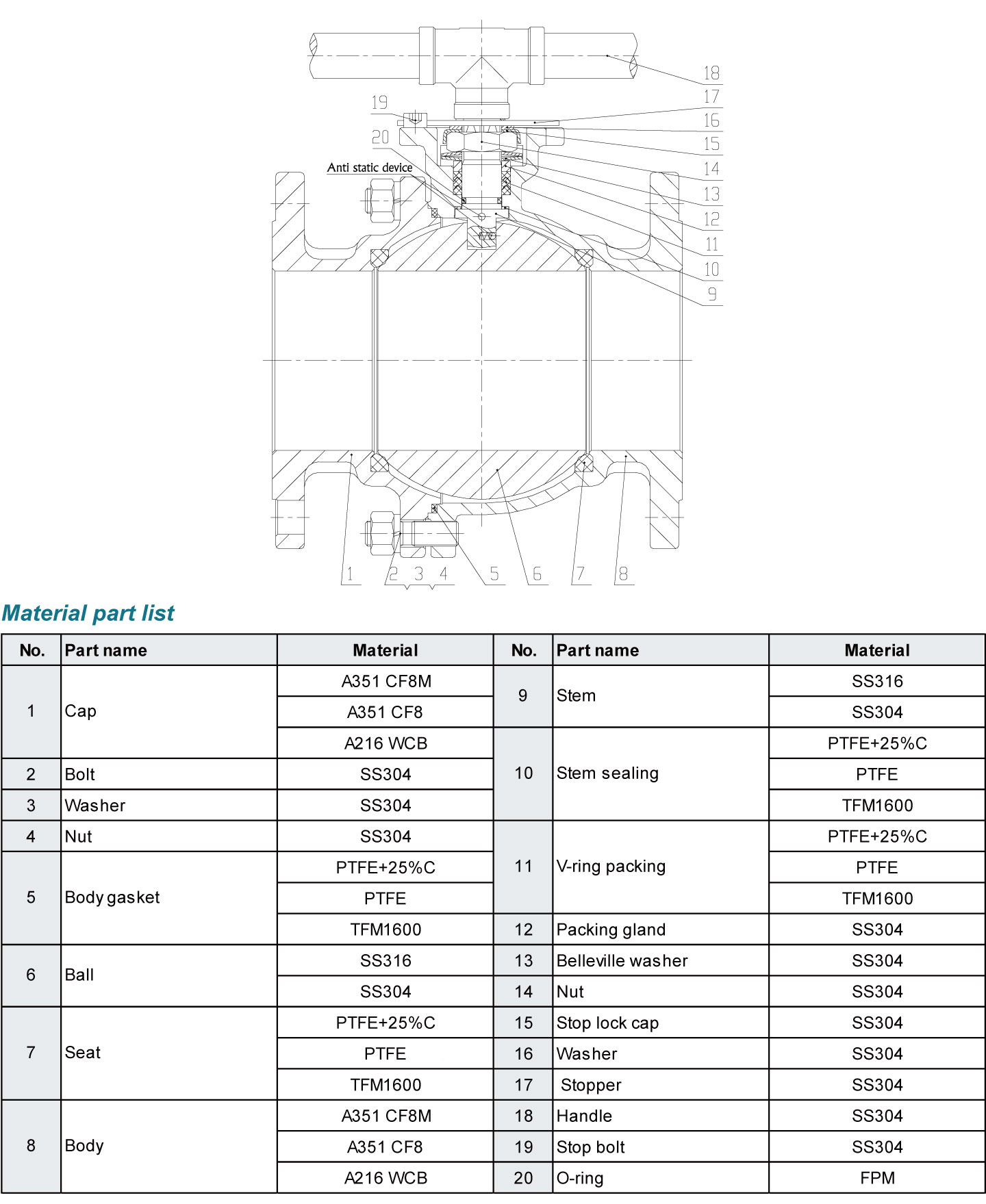 • Anti-static devices for ball - stem - body.