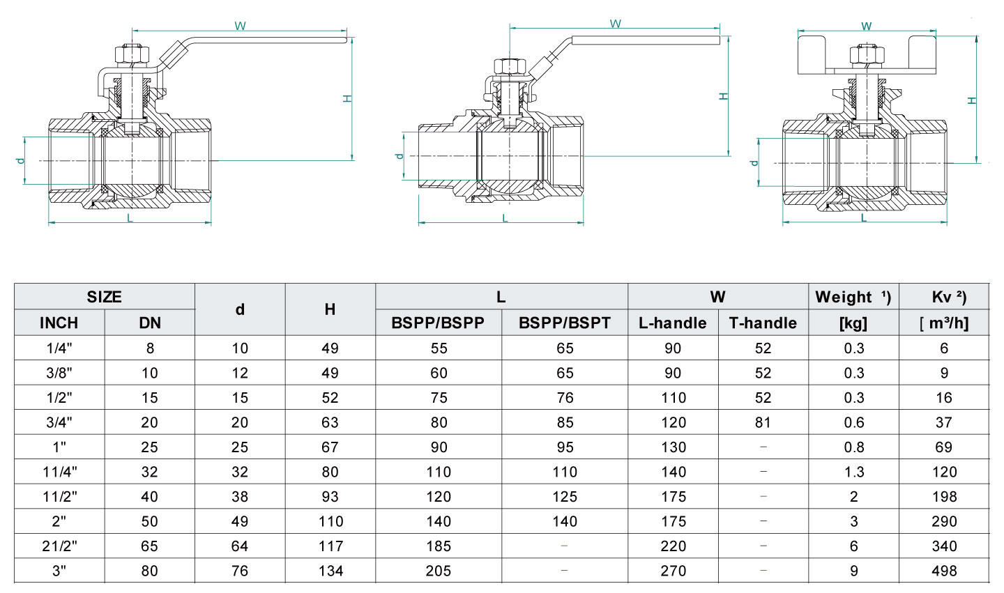 1) Weight is for valve with locking device. PS: 0.03kg/pc for locking device.