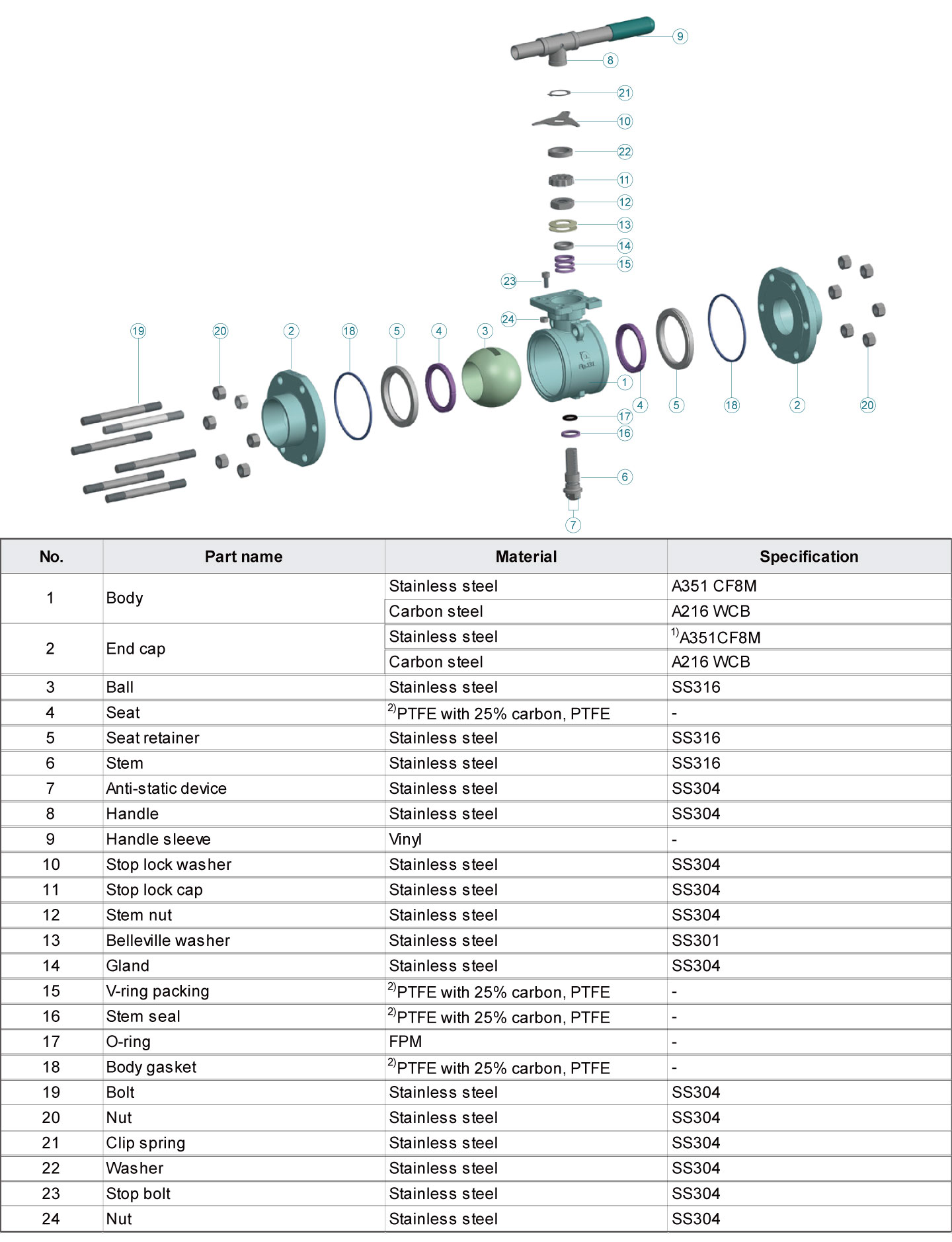 1) CF3M for CF8M ball valves with weld ends connection.