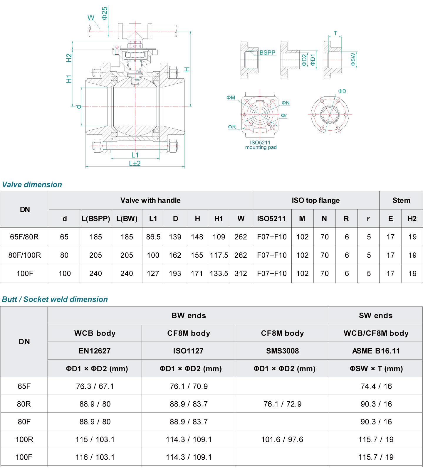 Size range1/2"-4" or DN15-DN100