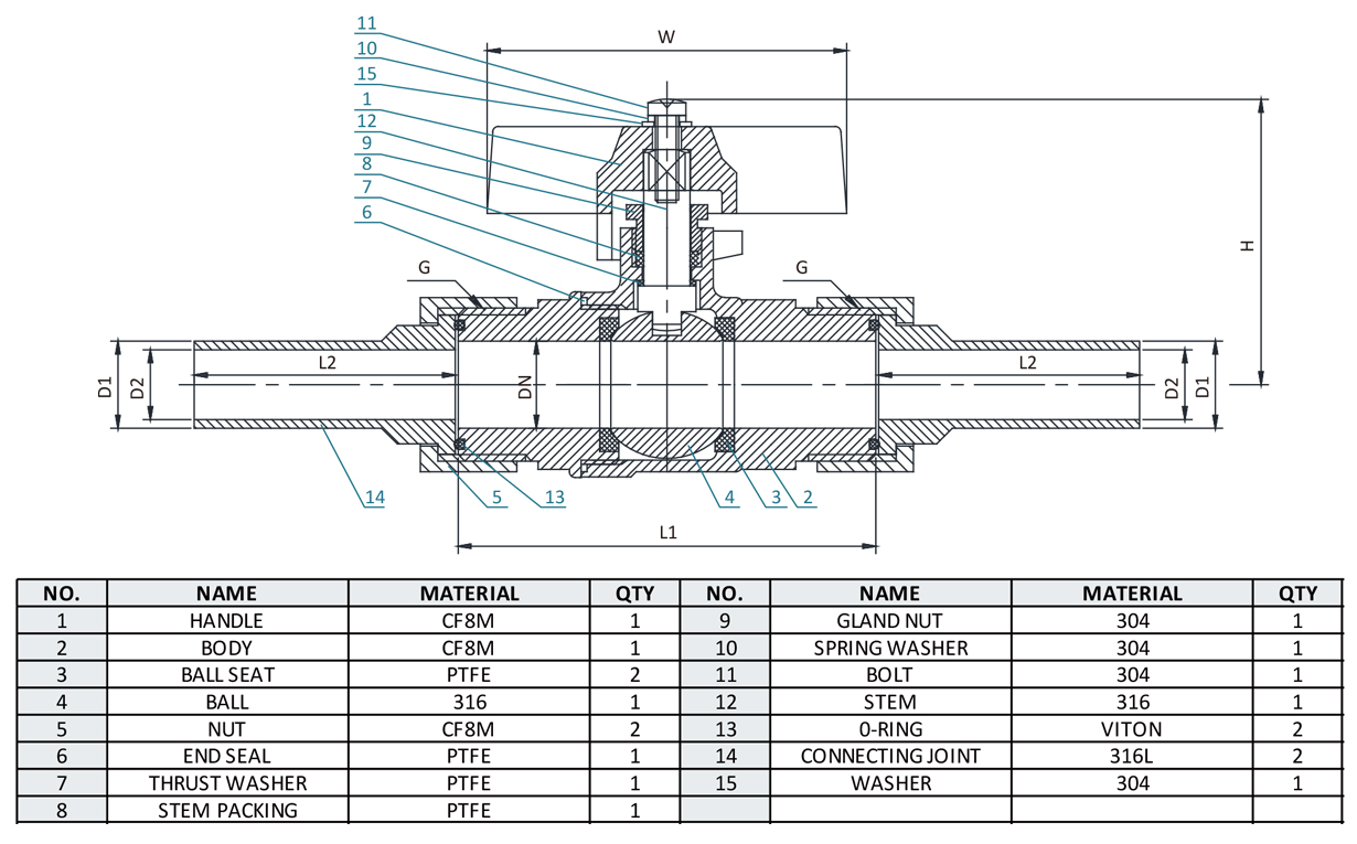 MaterialStainless steel 316 / PTFE